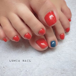 レッド ブルー ペディキュアのネイルデザイン ネイルブック